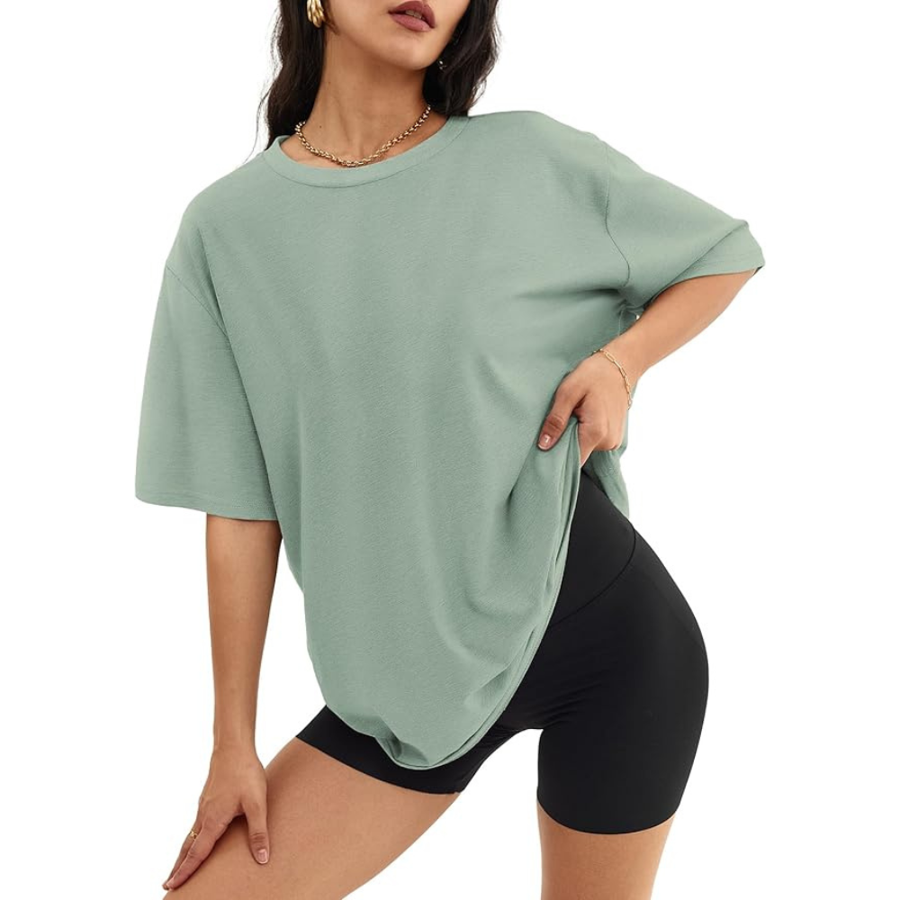 Next, a certain style choice is the oversized tee. It’s easy to move in and fun to wear.